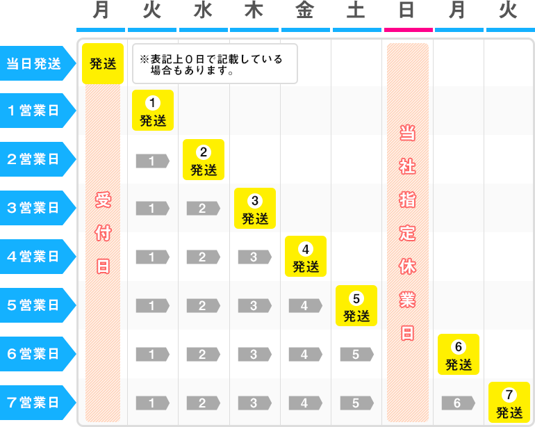 当社指定の休業日がございますので、納期計算の際はご注意ください。