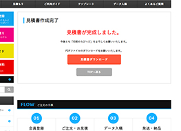 各商品の価格表の該当する金額をクリックし、お進みいただきますと、弊社の社判の入った正式なお見積書をWEB上で出力する事ができます。