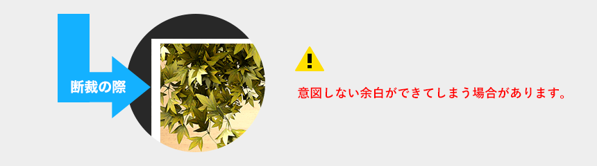 また、断裁時の小さなズレにより線が見える部分と見えない部分がでてきてしまう恐れがあります。