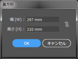 ※ここでは仮にA4サイズのトンボを作成するとして、297mm×210mm と入力します。
