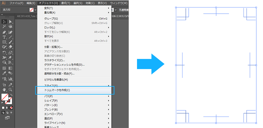 3「オブジェクト」より「トリムマークを作成」を選択する