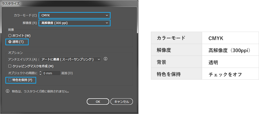 Illustratorによるラスタライズ効果の設定方法
