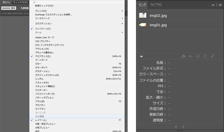ウィンドウ」>「リンク」を選択する