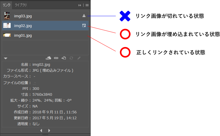 2リンクパレットでリンク画像の状態を確認