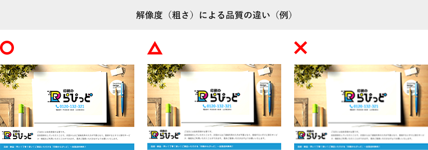 - ○画像解像度が高い場合でも、元データの品質により仕上がりは異なってまいります 。