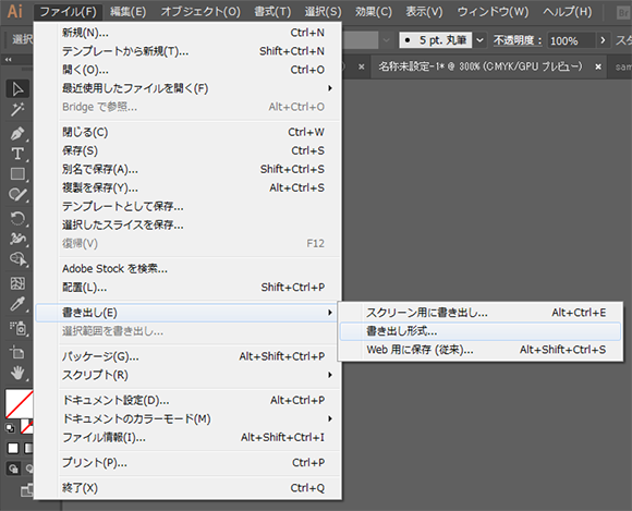 1「ファイル」>「書き出し」>「書き出し形式」を選択