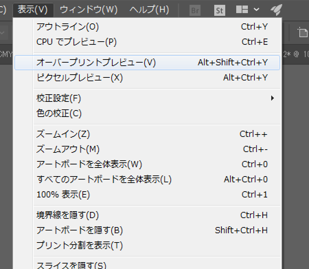1「画面」>「オーバープリントプレビュー」