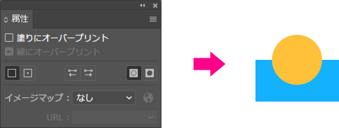 オーバープリントのチェックがない場合、「オーバープリントプレビュー」でも変化はおこりません。