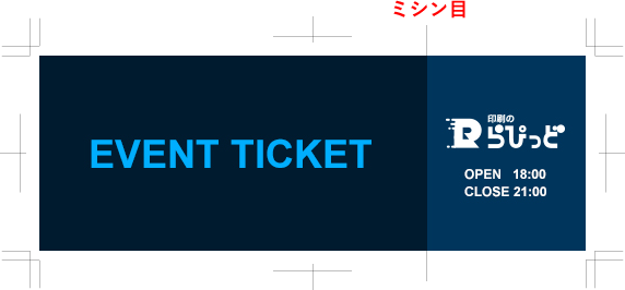 印刷物にミシン目加工があり、仕上げ内にミシン目の印刷などを残さない形での仕上げをご希望される場合は、下記のようなご指示をお願い致します。