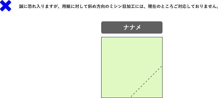 仕上げ内に存在する線・オブジェクトはとらずに残したままの状態となりますのでご注意ください。 なお、ミシン目について斜めのミシン目加工のご対応はいたしかねますのでご了承下さい。