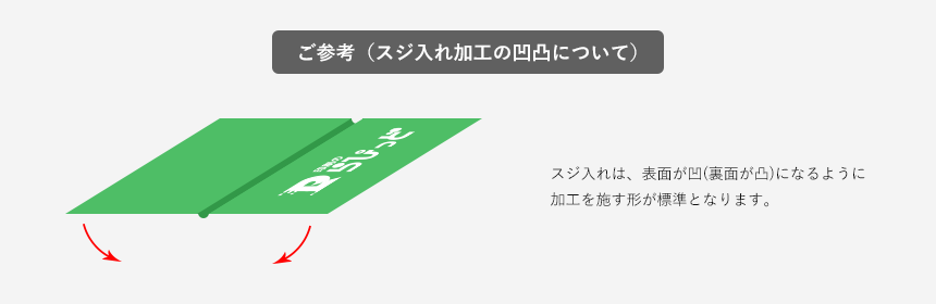 スタンプカードや往復はがきなどのオプションでスジ入れ加工などが含まれているものに関しては、お客様の特別なご指示がない場合、従来のスジ入れ部分に加工を行います。