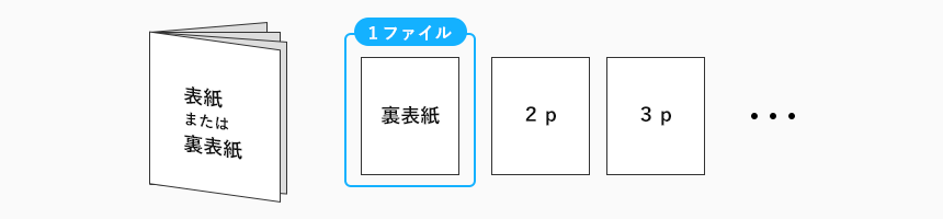 作成されたデータは「見開きページずつ」または「単ページずつ」での入稿を承っております。下記の図をご参考に、お客様のご都合に合った形式でご入稿くださいませ。