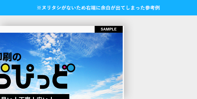 ヌリタシが無い場合、裁断した際、意図しない余白が出来てしまう形となりますが、原則、ご入稿データ通りでの進行となりますのでご注意下さい。