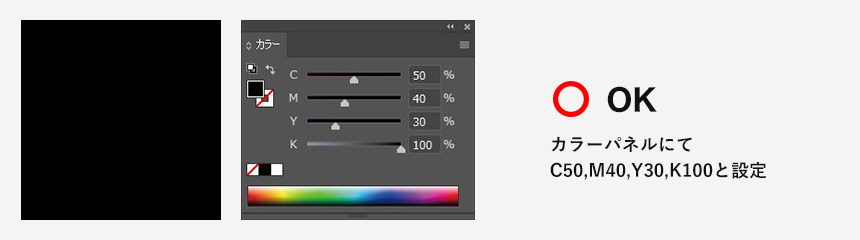 CMYK100%の設定はNG(リッチブラックについて)